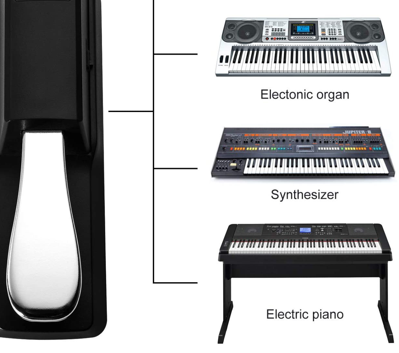 The universal sustain pedal is an essential accessory. Compatible with all electronic keyboards and digital pianos